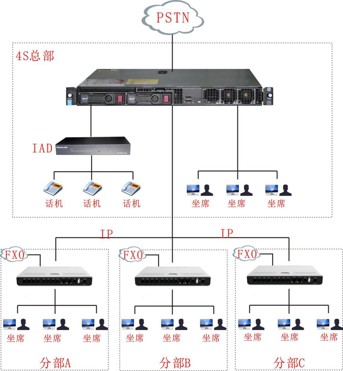 針對4S店銷售人員擁有移動辦公的需求,但同時實(shí)現(xiàn)呼叫中心對員工的統(tǒng)一管理,呼叫中心支持國際標(biāo)準(zhǔn)SIP協(xié)議,移動APP(軟電話終端)安裝到移動手機(jī)上,并通過WIFI以SIP協(xié)議的形式注冊到呼叫中心系統(tǒng),這樣就可以實(shí)現(xiàn)移動辦公人員打接電話均通過呼叫中心出局,實(shí)現(xiàn)統(tǒng)一的通話管理。